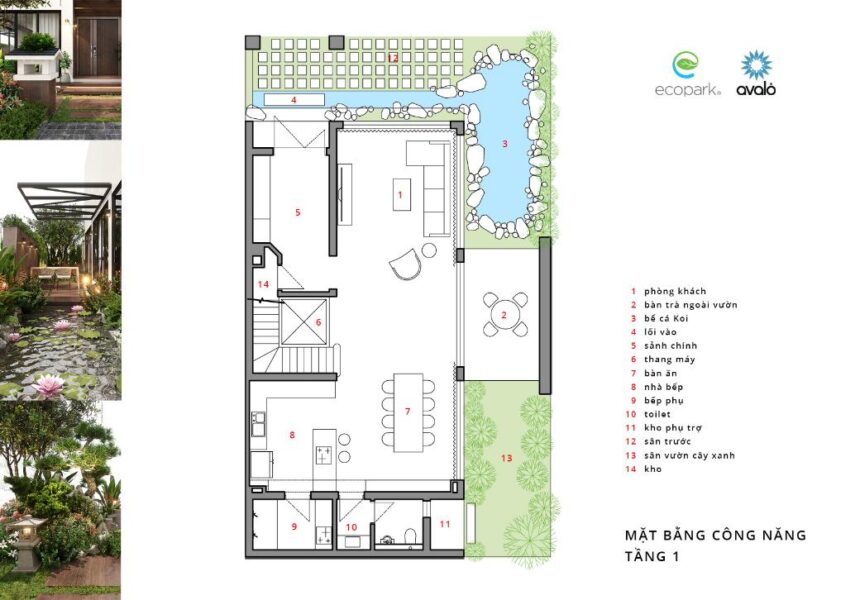 Xem thiết kế nội thất nhà đẹp với mặt bằng tầng 1 biệt thự Ecopark Marina