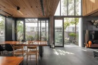 Màu đen được sử dụng nhất nhiều trong thiết kế biệt thự này, nhưng ngôi nhà không hề bị tối bởi có nhiều hệ cửa kính lớn lấy sáng.